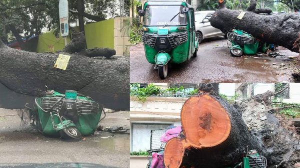 রাজধানীর ধানমন্ডিতে একটি বিশাল আকৃতির গাছ উপড়ে সড়কে থাকা তিনটি গাড়ির ওপর পড়েছে। বৃহস্পতিবার বেলা সাড়ে ৩টার দিকে ৬ নম্বর সড়কে এ ঘটনা ঘটে। শুক্রবার এ বিষয়ে জানতে চাইলে ঢাকা